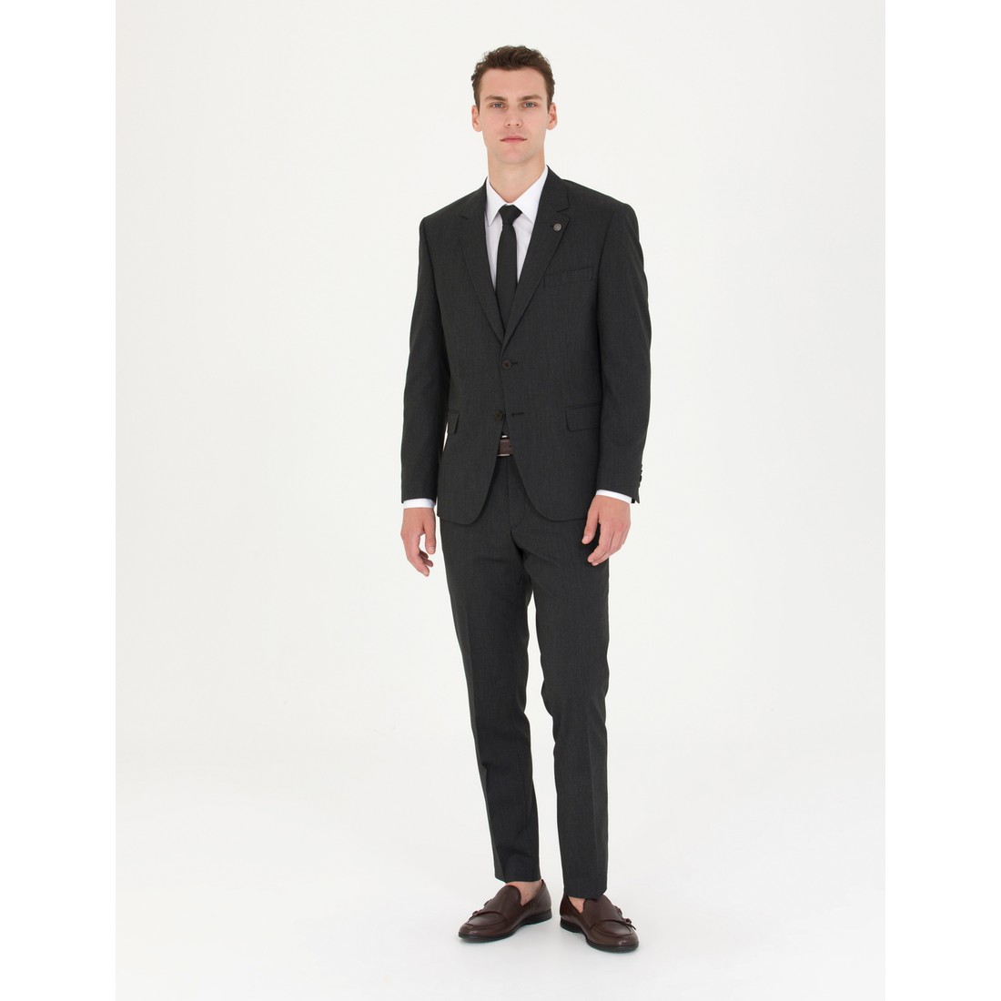 Antrasit rengi, modern kesim ve çizgi detaylarıyla öne çıkar. Zarif görünümü ve detayları, özel ve resmi durumlar için ideal bir tercih oluşturur.